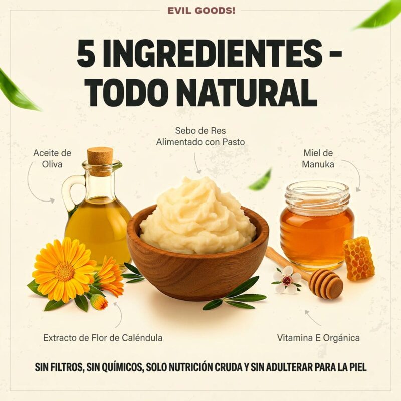 Utilizamos sebo de vacas alimentadas con pasto, procedente de granjas éticas de EE. UU., sin aceites de semillas, sin rellenos, solo una nutrición real que tu piel puede reconocer.